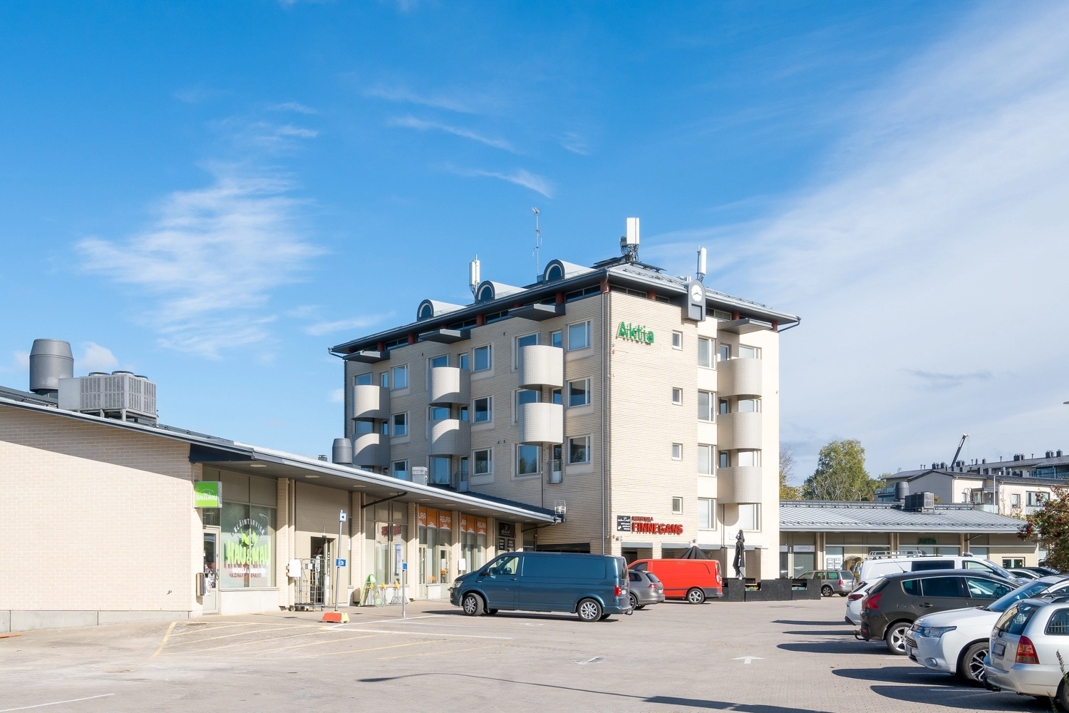 Kiinteistön edustalla pysäköintipaikkoja.
