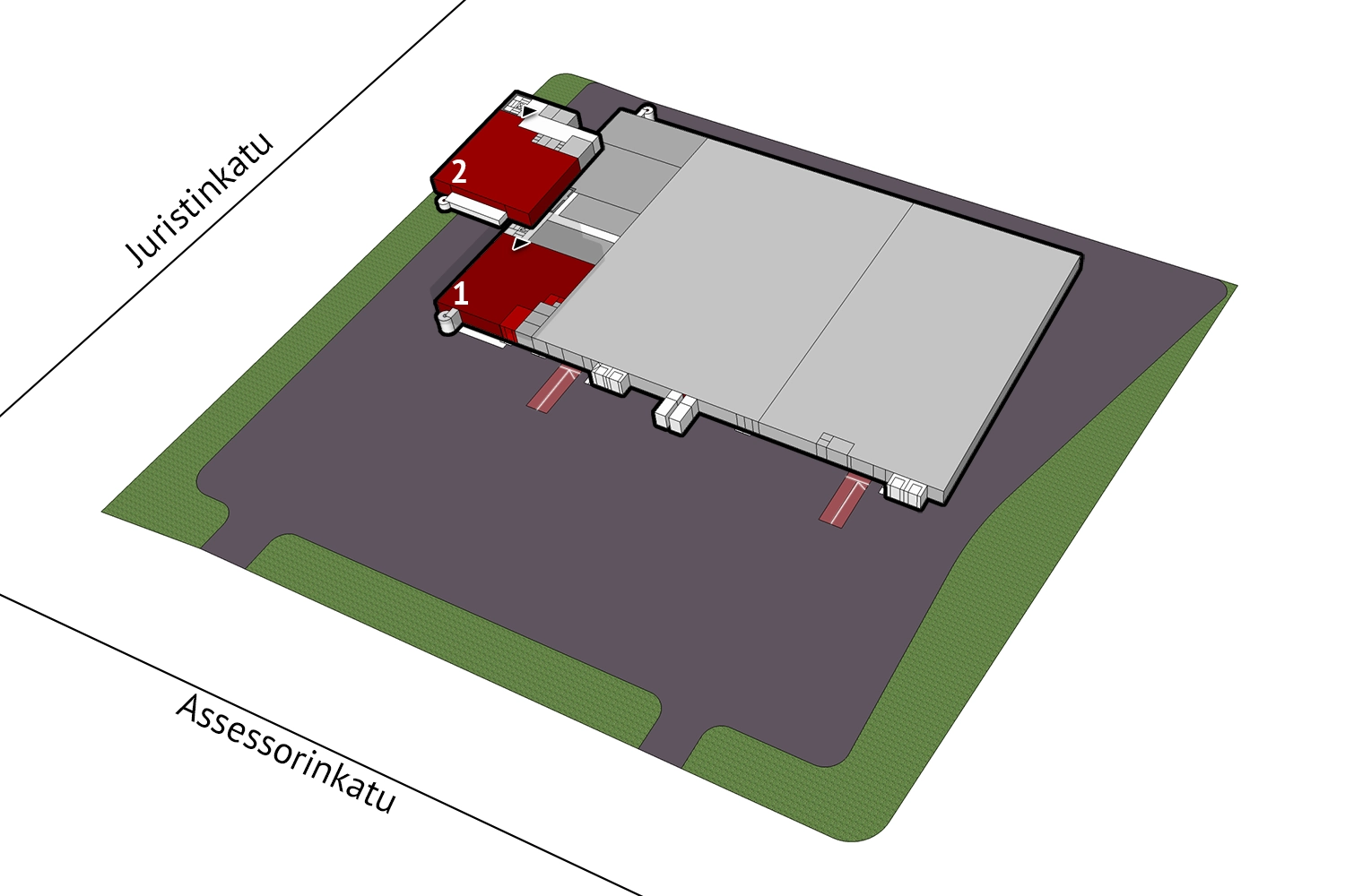 Parkkipaikkoja kiinteistön pihaalueella.