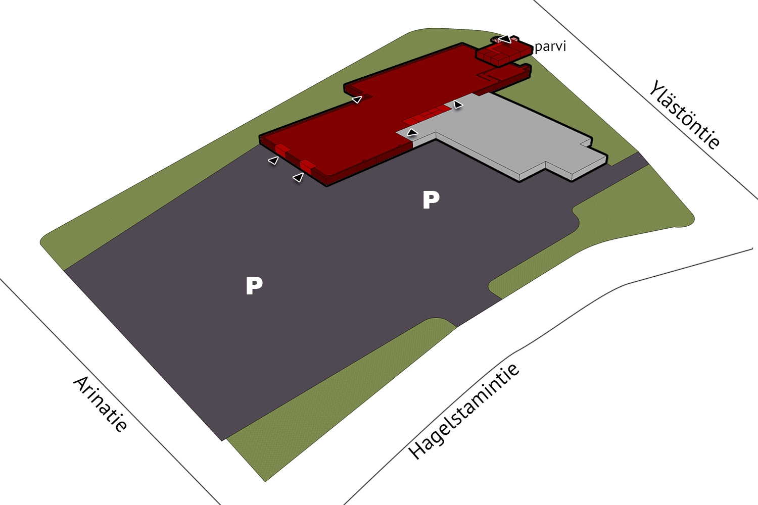 Runsaasti pysäköintitilaa piha-alueella.