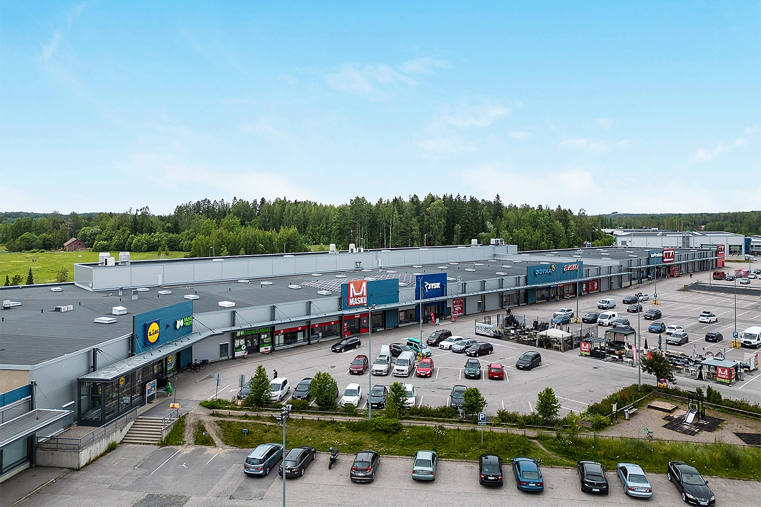Kiinteistöllä on laaja ja selkeästi jäsennelty pysäköintialue. Pysäköintipaikkoja on runsaasti sekä asiakkaille että vuokralaisten henkilökunnalle.