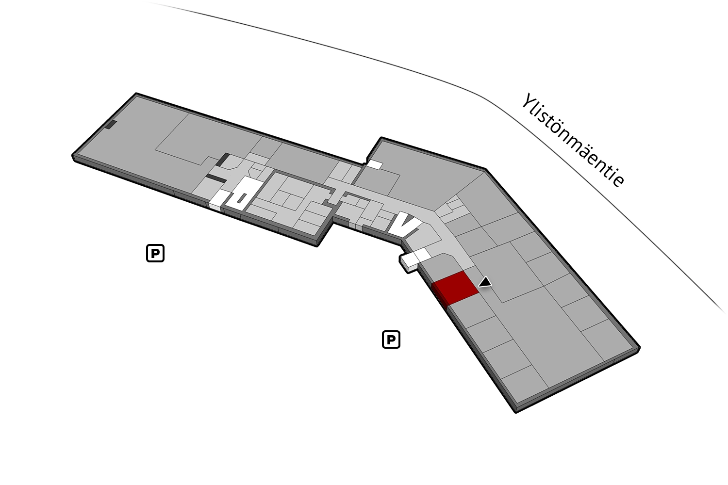 Kiinteistön pihalla on pysäköintialue, jolta löytyvät paikat sekä henkilökunnalle että vierailijoille. Lisäksi kiinteistön sisätiloissa on lämmin, kulunvalvottu pyöräparkki, joka tarjoaa turvallisen säilytyspaikan pyöräilijöille.